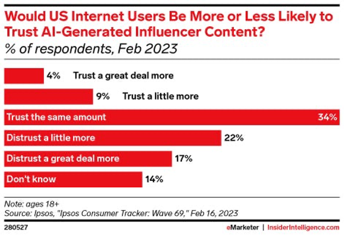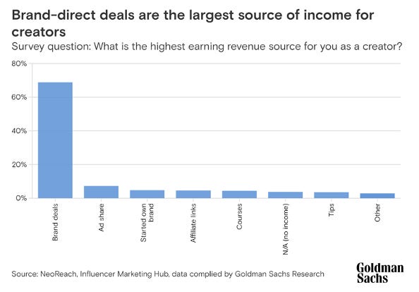According to Goldman Sachs, brand deals make up nearly 70% of revenue for all creators. With heightened competition spurred by Generative AI, brand deals and partnerships are poised to become harder to come by, making it crucial for creators to diversify their revenue streams and double down on their niche. Numerous conversations with micro-creators who hoped to go full-time on their content intended to adapt and utilize AI as a co-creator for merchandise, subscriptions, or affiliate marketing which will ensure a steady income and allow for more control over creator’s financial futures.